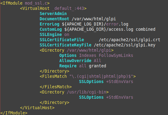 On édite le virtualhost d’apache2 pour renseigner les certificats SSL