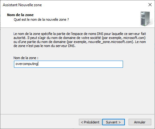 Nous allons choisir le nom de la zone que nous allons lui affecter, ici je mets mon nom de domaine.