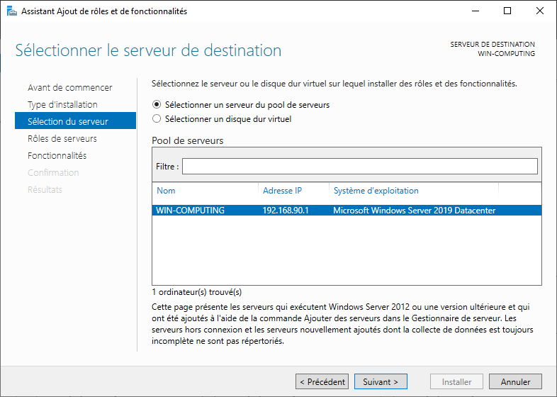 On sélectionne le serveur sur lequel on veut effectuer l’installation